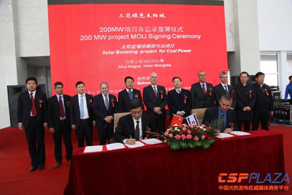 在落成儀式上,三花控股子公司內蒙古太清光熱能源有限公司還與HelioFocus公司共同簽署了200MW光熱輔助火力發電項目的合作備忘錄,基本確定了項目后續的建設計劃。內蒙古太清光熱能源有限公司總經理郭培民表示,三花綠色太陽城項目全部建設完成后,將有望成為全球最大的太陽能熱發電站基地。