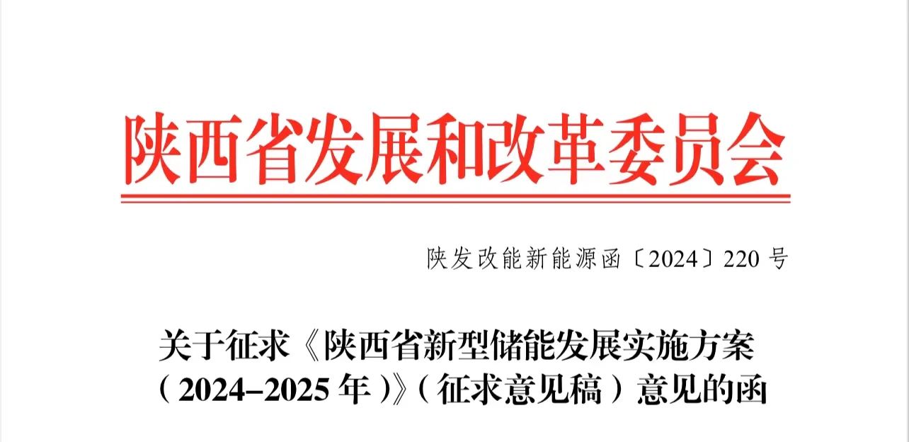 近日,陜西發改委、能源局發布關于征求《陜西省新型儲能發展實施方案(2024-2025年)》(征求意見稿)意見的函(以下簡稱“征求意見稿”)。