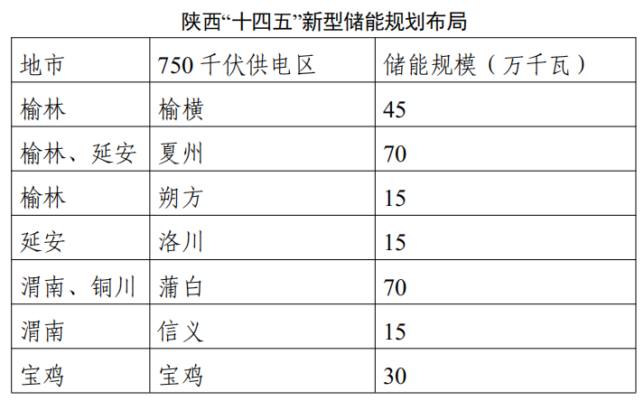統籌考慮陜西電網結構與新能源分布,提出以下新型儲能規劃布局。