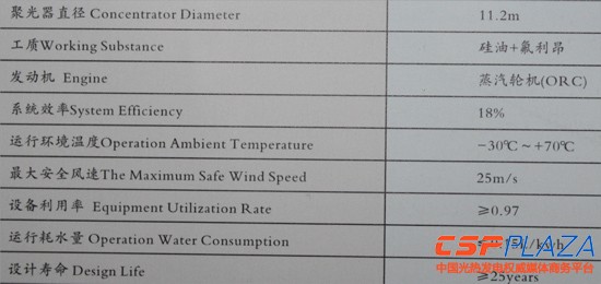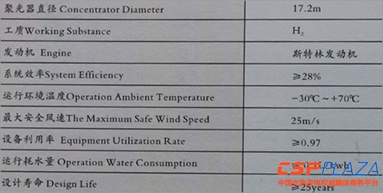 圖:湘電25KW碟式光熱發電系統參數(耗水量≤0.1L/kwh)