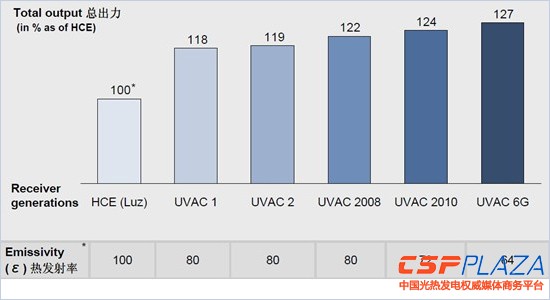 注:上述數據為相對于Luz的HCE集熱管的相對數據,僅供參考。數據來源:Siemens
