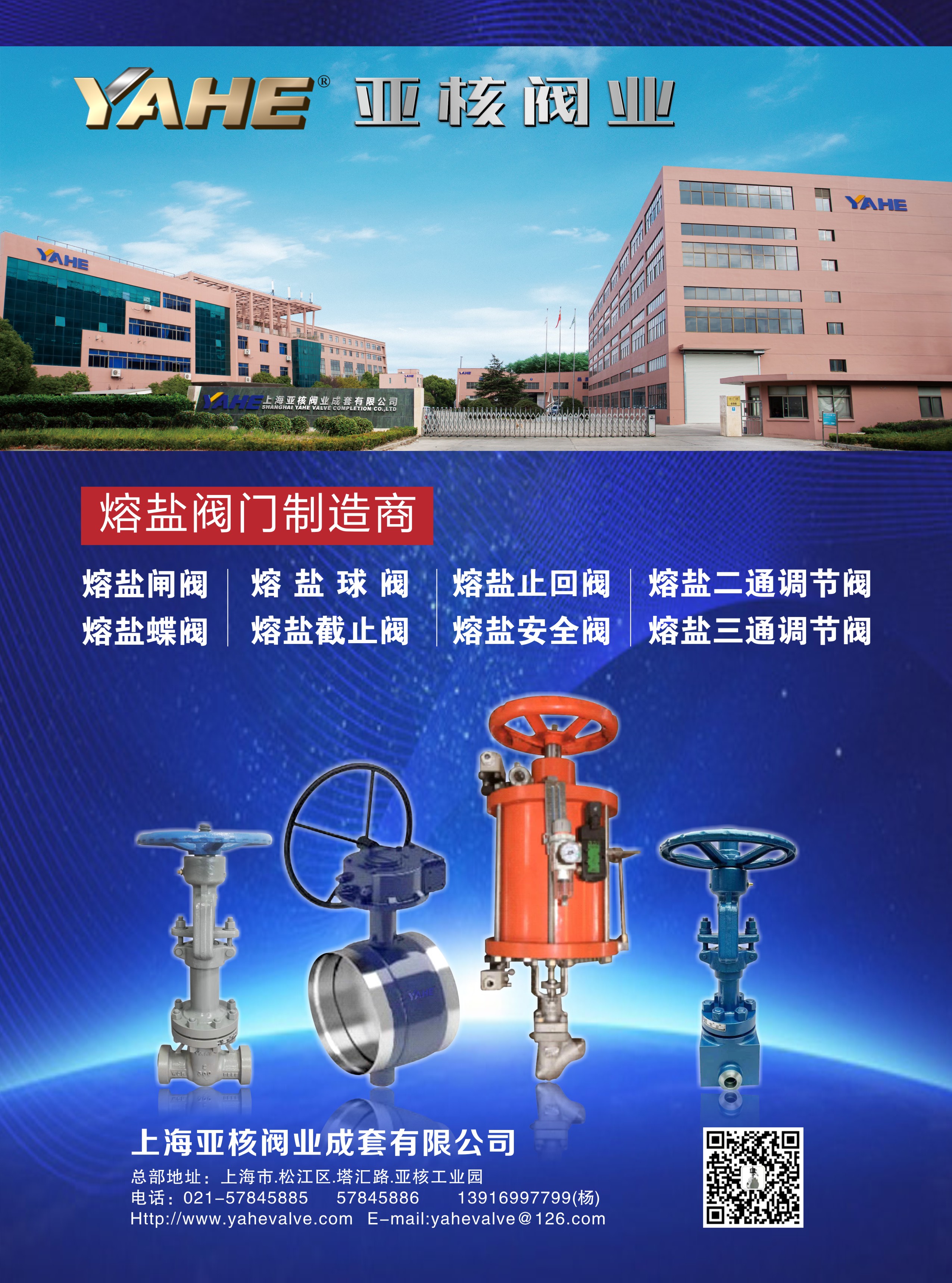 日前,上海亞核閥業成套有限公司(簡稱亞核閥業)確認參展即將于2024年4月25-26日在呼和浩特香格里拉大酒店召開的2024第十一屆中國國際光熱大會暨CSPPLAZA年會(CPC2024),并將攜其可用于光熱發電的熔鹽截止閥、熔鹽調節閥、熔鹽閘閥、熔鹽止回閥、熔鹽蝶閥、熔鹽安全閥、熔鹽球閥、熔鹽過濾器等系列產品進行現場展示。