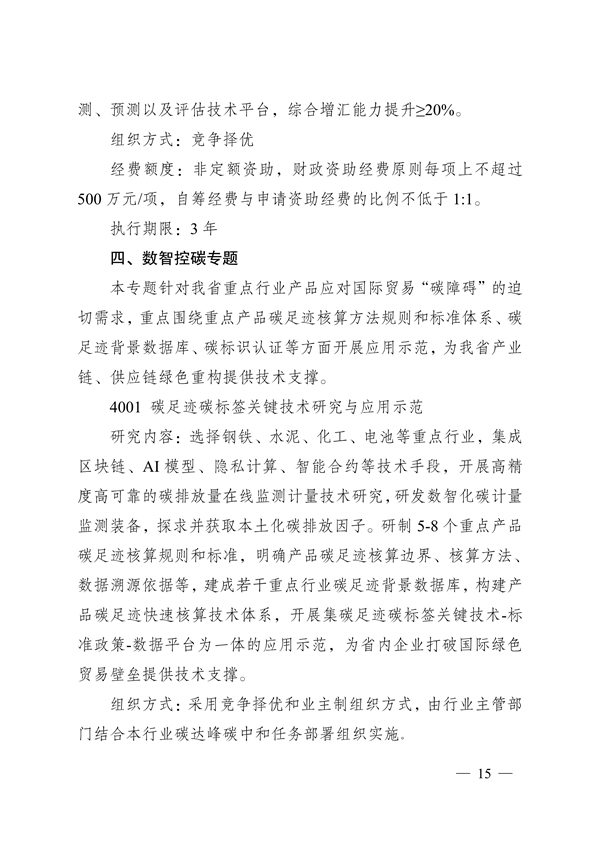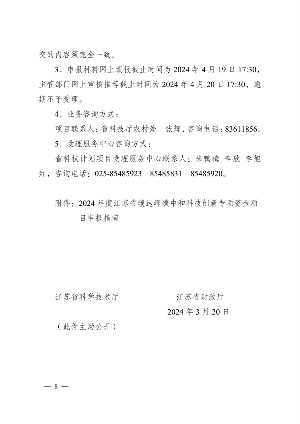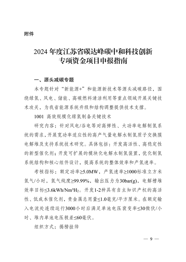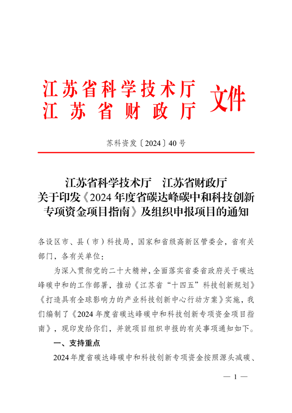3月22日,江蘇省科學技術廳、江蘇省財政廳印發《2024年度省碳達峰碳中和科技創新專項資金項目指南》及組織申報項目的通知(以下簡稱“通知”)。
