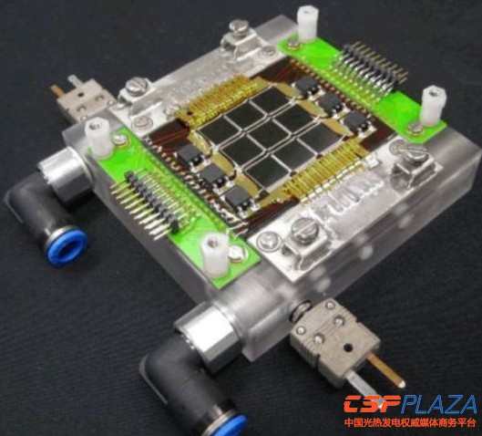 HCPVT系統的整個接收器共有數百個光電芯片,能夠提供25千瓦電量。光電芯片安裝在微結構層,微結構層負責將液體冷卻劑輸送到距離芯片只有幾十微米的位置,冷卻劑的作用是吸收熱量,效率是當前系統的10倍。IBM研究院的布魯諾-米切爾表示,我們計劃在微通道冷卻模塊上使用三結光電池,能夠直接將所收集陽光的超過30%轉換成電量,同時允許余熱回收效率達到50%以上。