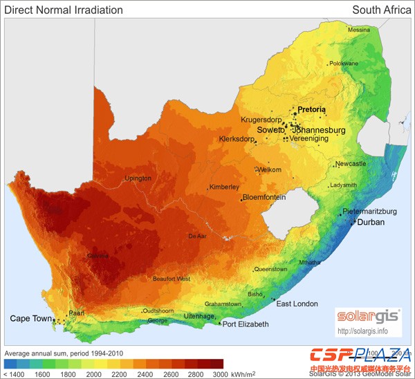 圖:南非DNI輻照簡圖