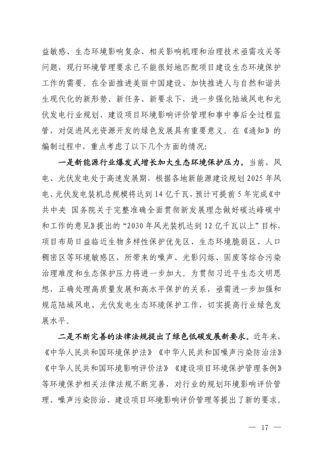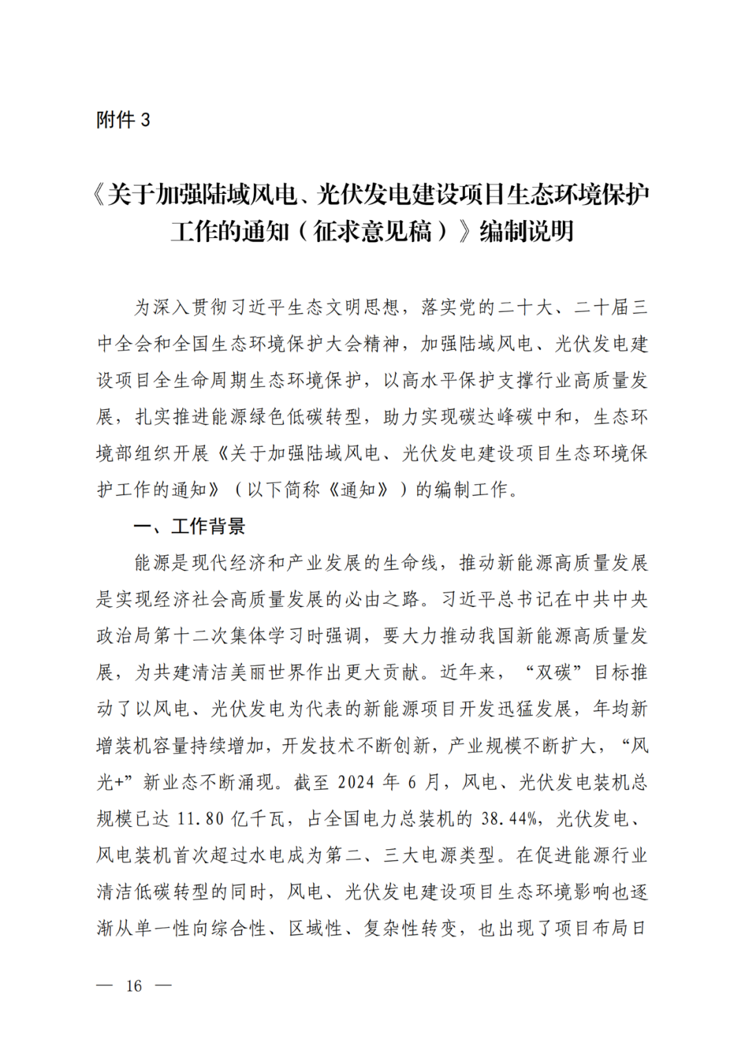 3.《關于加強陸域風電、光伏發電建設項目生態環境保護工作的通知(征求意見稿)》編制說明