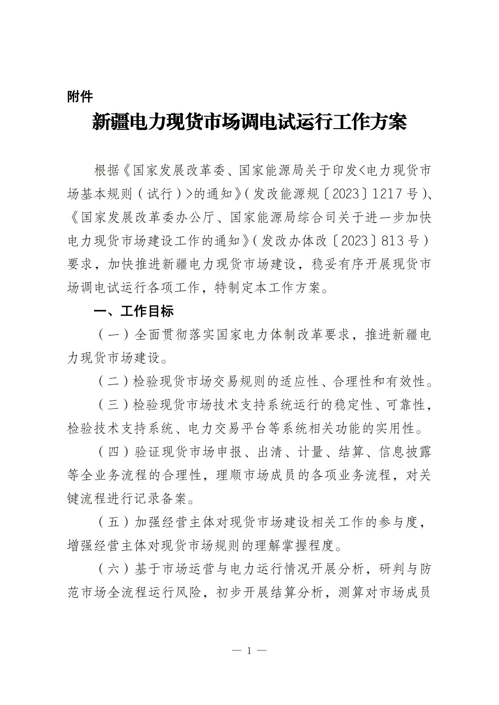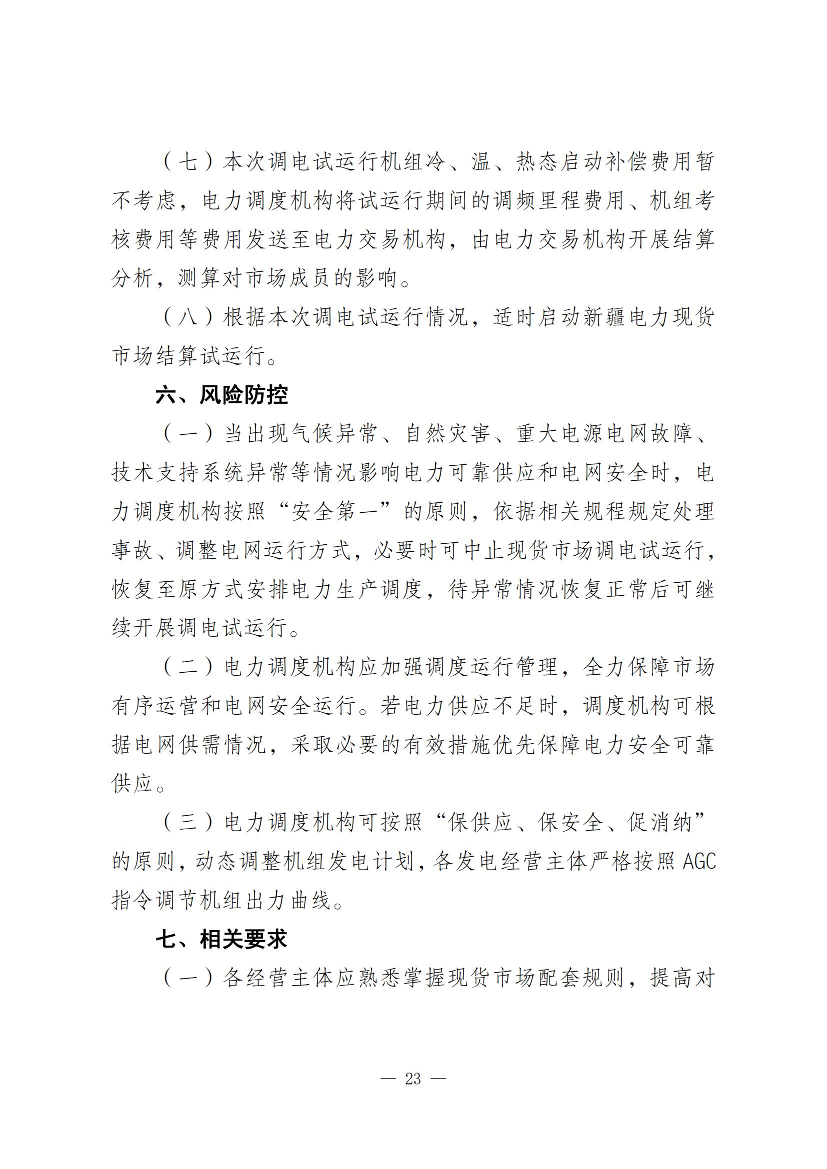 關于開展新疆電力現貨市場調電試運行的通知