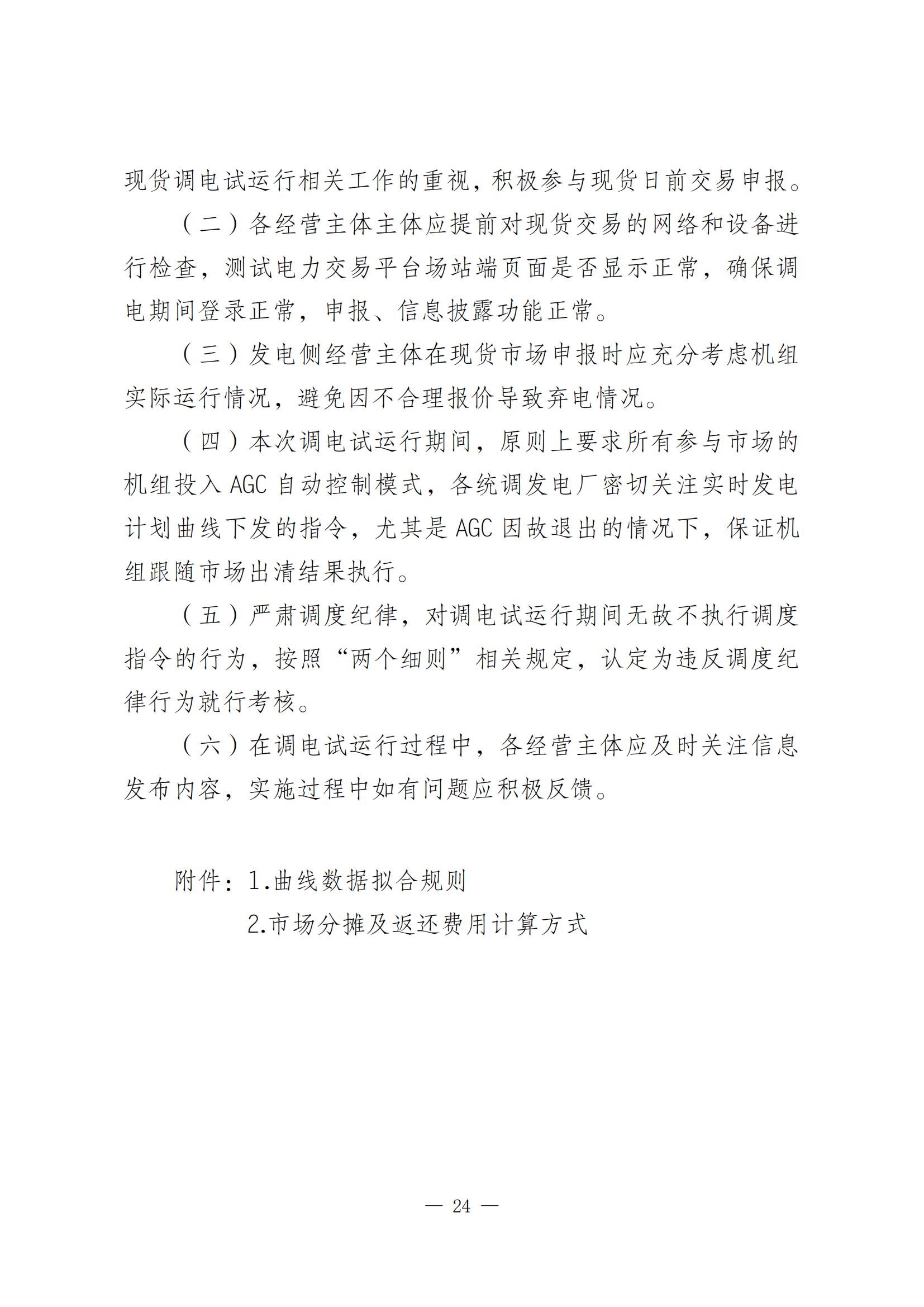 本次調電試運行,市場運營機構依據工作方案開展現貨市場的日前市場、實時市場以及調頻輔助服務市場交易,按需開展發電側調峰、新型儲能調峰、用戶側調峰以及備用輔助服務市場交易。交易結果實際執行,不進行結算。