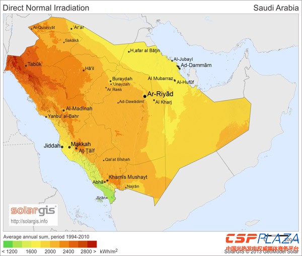圖:沙特DNI項目輻照圖(來源:Solargis)