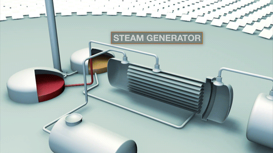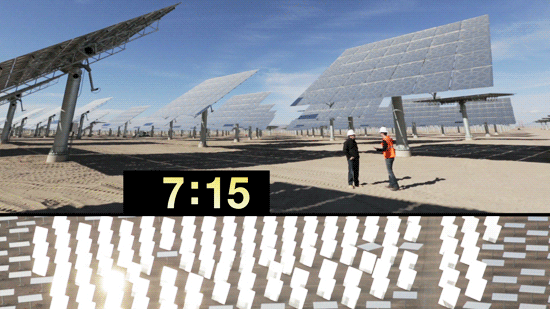 CSPPLAZA光熱發電網訊:美國,SolarReserve正在內華達州建設的110MW的新月沙丘(Crescent Dunes)光熱電站即將完工,該電站建成后將成為全球在運行的最大的熔鹽塔式光熱電站。下面幾張動態圖幫你了解該電站的工作原理。