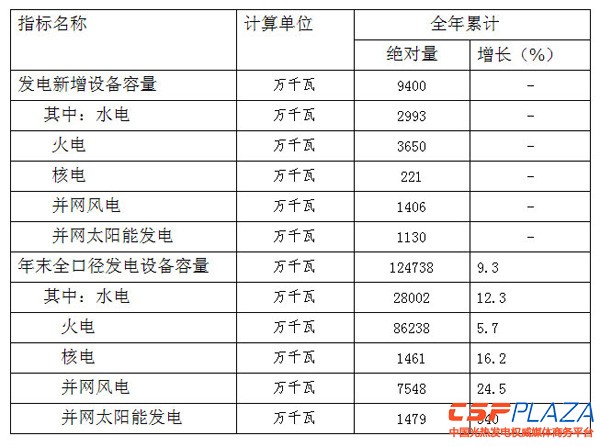 CSPPLAZA光熱發電網訊:根據中電聯快報統計,2013年全國發電裝機實現平穩較快發展,全年新增發電裝機9400萬千瓦,其中,水電新增2993萬千瓦,火電3650萬千瓦,核電221萬千瓦,并網風電1406萬千瓦,并網太陽能發電1130萬千瓦。