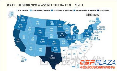 資料1.美國的風力發電設置量(2013年12月累計)