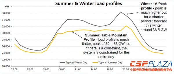 光熱發電適合于南非電力市場的原因是其可以通過儲熱實現持續供電,滿足電力的調峰需求。南非在冬季的晚用電高峰在16:30到21:30之間的五個小時,儲熱型光熱發電可以在這5個小時內滿足供電需求。