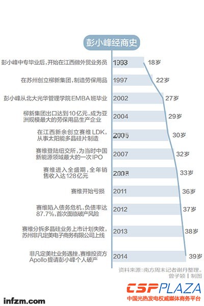 “他對發現新市場很有心得,他就像一支矛,沖得太前面,后面就會露出來,如何保護后面露出來的部分,他并不擅長,也不是他的興趣所在。”一位熟悉彭小峰的光伏業內大佬對南方周末記者說,彭善于“向前看”,發現新機遇,但如何靜下心來回頭維護一個企業帝國,在大船出現漏洞時及時修補,則并非他強項。