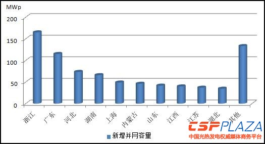 分布式光伏。主要分布在電力負荷比較集中的中東部地區,華東和華北地區累計并網容量分別為145萬和49萬千瓦,占全國分布式光伏的60%。排名前三的省份分別為浙江、廣東和河北省,并網容量分別達到16萬千瓦、11萬千瓦和7萬千瓦,三省之和占全國分布式光伏并網總容量的40%以上。各省(自治區、直轄市)分布式光伏情況見附表2。