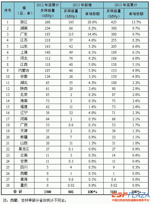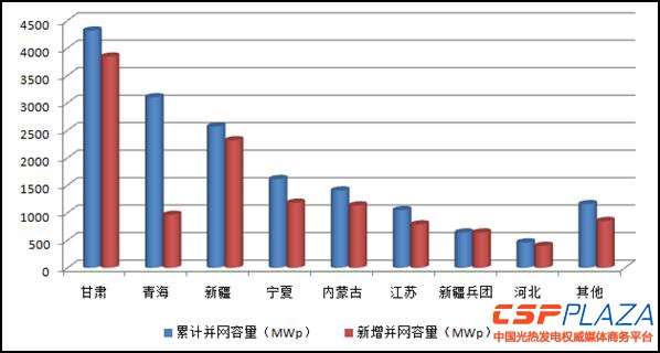 圖1 2013年底主要省(區)并網光伏電站情況