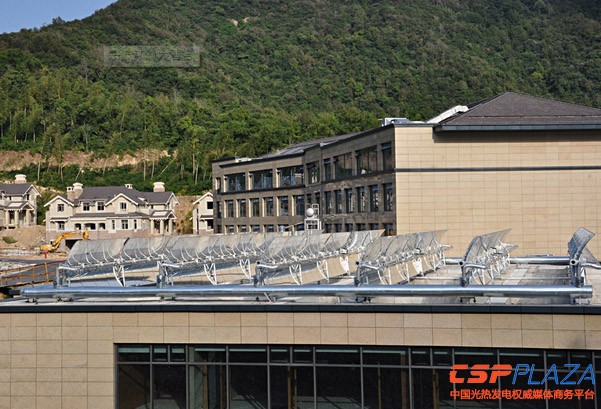 該項技術的工作原理是通過聚光型集熱器吸取太陽能,驅動空氣源吸收式熱泵機組而實現建筑物冬季采暖需求的一種新型的采暖方式,太陽能熱泵利用太陽能從空氣中提取熱量,達到太陽能、空氣能的完美結合,使兩種新能源渾然天成。該項技術主要特點是采用槽式聚光型集熱器收集太陽能,全時自動追日;使用導熱油為工作介質,在零下25℃不凍不稠。在循環狀態下,零下45℃時可正常工作,不凍管,零下30℃情況下能正常工作;在沒有太陽的時間內,使用蓄能器輸出熱量驅動設備運行;采用超白鋼化玻璃及自動抗災設計,可抵抗12級臺風、暴雪、冰雹等,使用壽命可達20年;高效的集熱器及吸收式主機,使相同條件下集熱器面積只有傳統平板太陽能集熱器的四分之一。太陽能采暖按建筑面積計算,每平方米需投資約200元。太陽能空調(采暖加制冷)按建筑面積計算,每平方米需投資約500元,約為傳統空調的1.4倍,運行費用每平方米每個制冷(采暖)季節約為12元,為傳統空調的25%。按輻照度每平方米800瓦、日照時數每年2500小時計算,投資回報期一般小于3年。同時可節約大量標煤,經濟社會效益極為可觀。天津薊縣水務局辦公樓項目已經運行兩年,效果良好。山東奇威特人工環境有限公司辦公樓應用該項技術通過了中國建筑科學研究院的檢測,已經運行4年,費效比相當于投資回報期兩年,二氧化碳減排量全年91326.8千克,節能效果非常明顯。