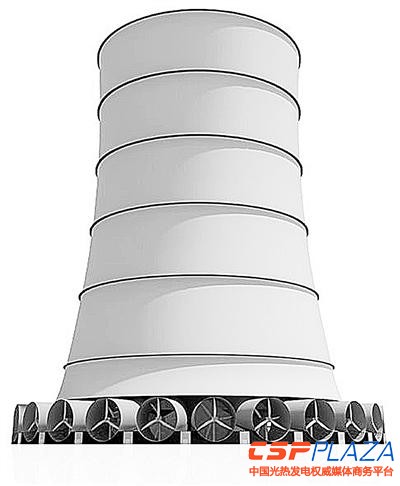 這座塔位于炎熱干燥的地區。其結構是一個聳入云端的中空圓柱體,頂部開口以便驕陽炙烤過的干熱空氣進入。旁邊設有噴水系統,可將水泵提送上來的水形成水霧噴灑到塔頂的開放區域。當水分遇上干燥的空氣之后蒸發,空氣迅速變冷,比重增加,由此形成垂直下沉的氣流,速度可達約50英里/小時。