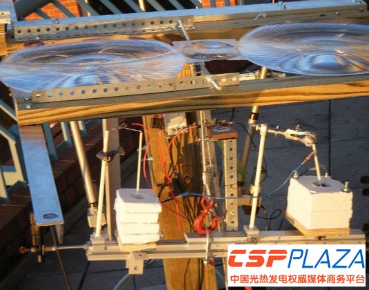 CSPPLAZA光熱發電網訊:大型菲涅爾透鏡聚焦太陽光,把石灰石加熱到900°C。同時利用太陽能電池發電,分解石灰石,形成石灰,以制備水泥。