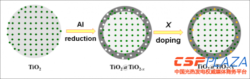 最近,中國科學院上海硅酸鹽研究所與北京大學化學學院開展了合作研究,黃富強、汪宙、楊重寅、林天全等科研人員原創地發展出多種新型制備方法(氫等離子法、鋁還原法、二步非金屬摻雜法),大幅提高了太陽光譜中可見光和近紅外光的吸收,效果明顯。這些最新發現的黑色二氧化鈦納米晶,不同于高溫氫氣還原的黑色氧化鈦,為一種核殼結構,核區仍為結晶的二氧化鈦,外殼為無定型的結構,其中無序的外殼是使白色二氧化鈦變成黑色的功能區域,無序的外殼包含氧空位或非金屬X摻雜(X=H、N、S、I)。該結構可導致對太陽光的吸收高達85%,遠優于文獻報道(30%)。