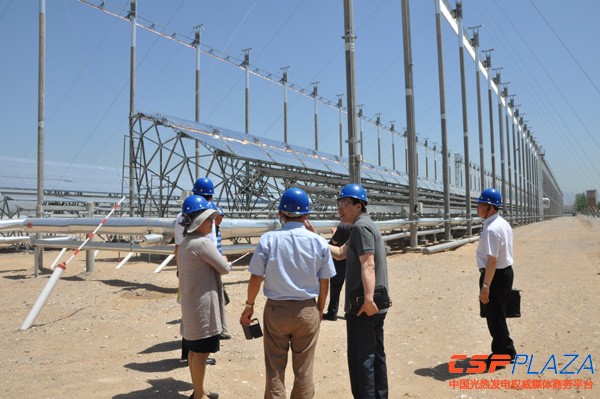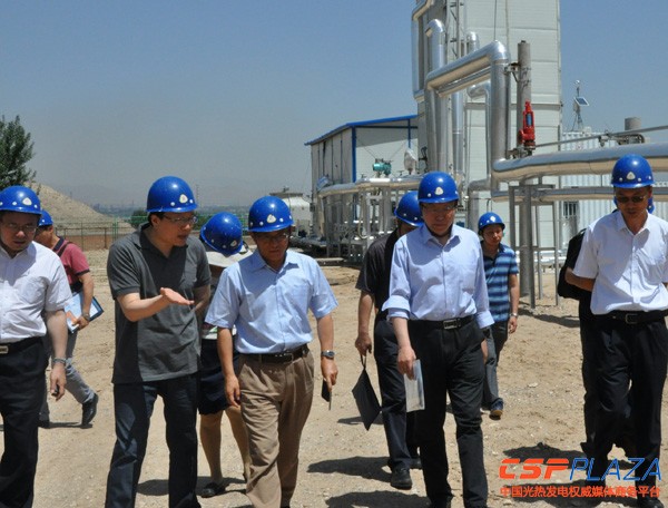 兆陽光熱匯報了兆陽光熱團隊的研發歷程、設計理念,并針對高聚光比、直接蒸汽發生技術和儲能系統這三個顯著區別于目前其他主流光熱發電技術體系的技術特點作了重點介紹。中電聯規劃與信息統計部主任歐陽昌裕、標準化管理中心主任許松林和中電聯、電促會有關部門人員參加考察,參與考察的同志們對電站的控制室、發電系統、儲能系統、太陽島等電站整體和重點部位進行了細致的觀測指導并提出了相關問題,兆陽光熱的專家給予了充分的解答。此次考察的內容和成果,將會成為研究我國光熱發電的重要素材。