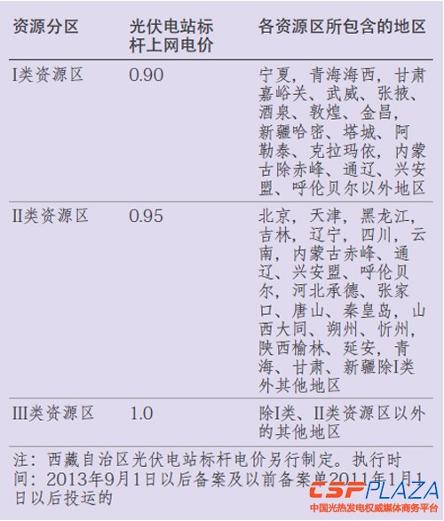 光伏電站方面,國家發改委發布的《發揮價格杠桿作用促進光伏產業健康發展》中明確了全國光伏電站標桿上網電價(如下表 )。國家明確電價補貼后,中國各省市地區也相繼給出各自的光伏政策及補貼。