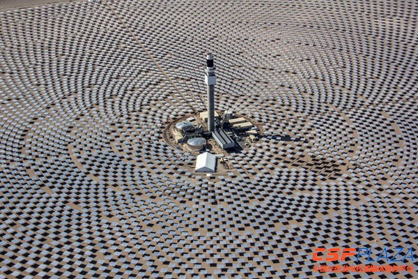 新月沙丘光熱電站是一個大型的太陽能熱發電站,其擁有36萬片反射鏡來反射陽光,這些反射鏡整體看起來就像一個巨大的用玻璃制成的麥田怪圈,在遠處看去呈現出像艾草或風滾草一樣的形態。光熱電站依靠這如海洋般的反射鏡陣列將太陽光的能量聚集,加熱集熱塔中的熔鹽至1050華氏度(565攝氏度)的高溫。如此之高的運行溫度對材料等各方面都提出了諸多技術難題,甚至不得不由航天領域的科學家來幫助解決這些問題。被加熱后的高溫熔鹽存儲進熱熔鹽罐中,在那里其可以通過換熱器與水換熱來產生高溫高壓的水蒸氣驅動汽輪機發電——在需要電力的任何時候都可以,甚至在太陽沉落在內華達山脈之后的晚間也能滿足供電需求。