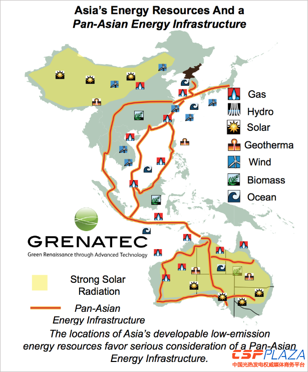 CSPPLAZA光熱發電網報道:打開一幅全球太陽能輻照資源地圖,在泛亞洲地區,可以看到中國和澳大利亞擁有適合開發太陽能光熱發電站的輻照和土地資源條件。在泛亞能源網絡的設想下,未來幾十年后,中國和澳大利亞通過泛亞能源網絡向泛亞洲地區出口供應光熱發電電能,可能并不僅僅是一個夢想。