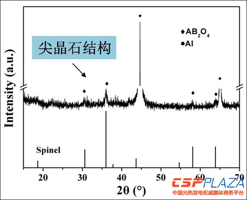 中國科學院蘭州化學物理研究所研究人員經過多年研究,采用兩種以上半導體尖晶石型過渡金屬氧化物,通過溶膠凝膠法將溶膠液浸涂或輥涂在金屬基材上,在催化作用下快速燒結,成功制備出具有明顯尖晶石結構(圖1)的耐高溫陶瓷納米吸熱膜,實現了理論和工藝技術上的重大突破。