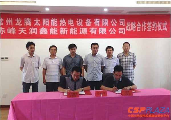 8月16日,赤峰天潤鑫能新能源有限公司總經理范國峰一行到訪龍騰并考察了公司的集熱管生產線。公司總經理俞科就龍騰公司在光熱發電技術研發與工程示范方面進行了系統的介紹。雙方就天潤鑫能規劃的50MW太陽能光熱電站項目簽署了戰略合作框架協議。