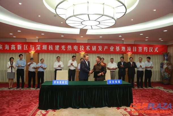 另據官景棟介紹,9月16日,天津濱海高新區與深核建簽署光熱發電技術研發與產業化基地項目投資合作協議。雙方將共同在天津打造一個光熱電產業從頭到尾的全產業鏈,包括集熱、換熱、儲熱、發電等全套設備的生產制造及一個世界級的光熱發電研發中心。最終可實現在這里下一份訂單就能建設一個完整電站的目標。