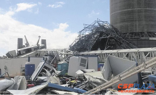 CSPPLAZA光熱發電網訊:南非Upington在建的50MW塔式光熱電站Khi Solar One項目當地時間11月3日遭受了一場十分猛烈的暴風雨的襲擊,風暴于當天下午的14點開始肆虐,對項目地的相關建筑物及建設設施造成了巨大破壞,并造成兩名工人死亡,七名工人受傷。