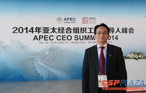 2014年11月8日至10日, APEC會議周期間最重要的工商界活動之一——2014年APEC工商領導人峰會在京隆重舉辦,本屆峰會邀請到了APEC各經濟體領導人、亞太地區工商界領袖和知名學者共約1500人集聚北京,就"推動區域經濟一體化"、"促進經濟創新發展、改革與增長"等議題進行深入交流,國家主席習近平同志出席開幕式并發表主旨演講。作為中國太陽能新能源行業的翹楚,中海陽能源集團股份有限公司董事長薛黎明應邀出席。