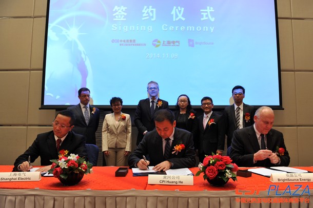 上海電氣電站集團副總工程師畢成業就此接受CSPPLAZA記者采訪時表示,“此次簽約是在美國駐華大使館的主導下,藉APEC峰會召開之際舉辦的一次簽約活動,美國商務部高級官員、中電投黃河水電公司副總經理魏顯貴、上海電氣電站集團副總裁袁毅、BrightSource公司董事長兼首席執行官David Ramm等出席了本次簽約儀式。”