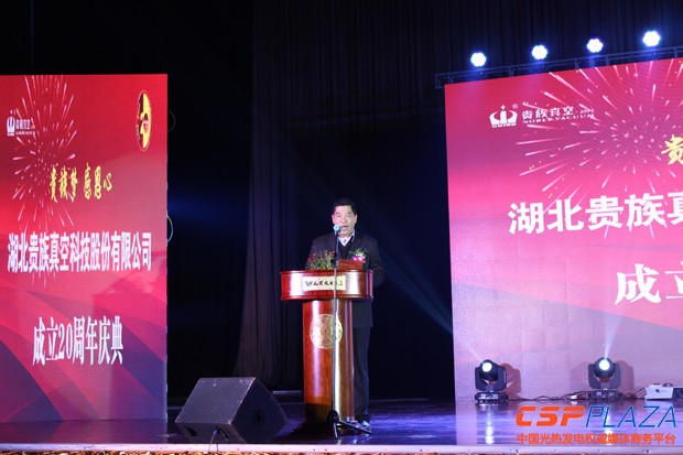 CSPPLAZA光熱發電網報道:12月28日,湖北貴族真空科技股份有限公司(以下簡稱“貴族真空”)在湖北黃岡舉辦“貴族真空成立二十周年慶典活動”。