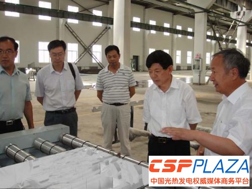 CSPPLAZA光熱發電網訊:7月10日,甘肅省政協副主席李永軍一行蒞臨蘭州大成位于蘭州新區的太陽能光熱發電中試和裝備產業化基地,實地考察了聚光太陽熱能示范項目及關鍵裝備研發情況。蘭州新區黨工委委員、管委會副主任楊建忠等領導陪同視察。