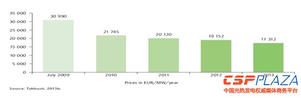 在經過一段時間的下降之后,陸上風電投資成本在2004-2009年反而大幅上升,在美國甚至翻倍,主要原因是風機及其零部件供應緊張,鋼鐵和銅價上升。自2009年開始,投資成本開始顯著下降,風機制造商之間出現激烈競爭。2008-2013年,全球風電投資成本至少降低了33%。