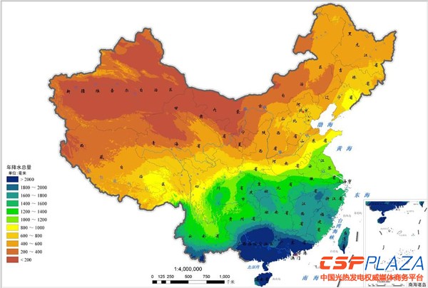 根據中國年降雨量分布圖我們可以看到,中國西北地區屬于比較缺水的地區,但是對于光熱電站來說,水資源又是必不可少的。