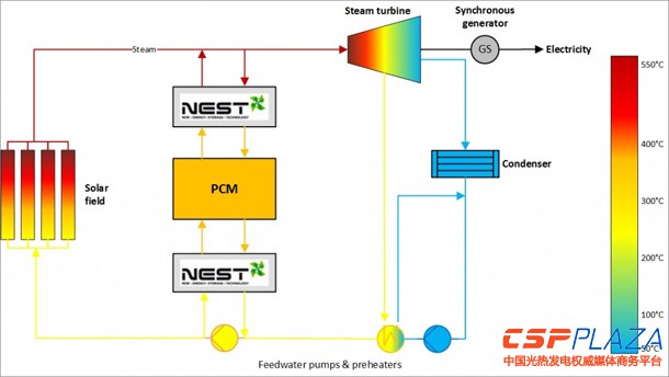 圖:DSG電站中應用NEST儲熱技術(PCM為相變儲熱材料)