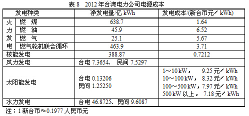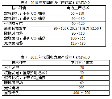 能源之母——太陽無私地將能源奉獻給地球,可是把這種不花錢的能源轉化為人類可用的商品,必然產生費用。再生能源免費的嗎?開什么玩笑!別認為獲得太陽能就像外國人在沙灘上曬干魚一樣,不花錢。一切離開經濟效益的預測,均屬于空談。如果再生能源是零成本,早就趕過火力發電了。目前,再生能源發電成本仍然比化石燃料發電高。發電成本因地區不同,技術不同,差別很大。現將近年來德國、英國、法國和中國臺灣的電力生產成本列于表中。