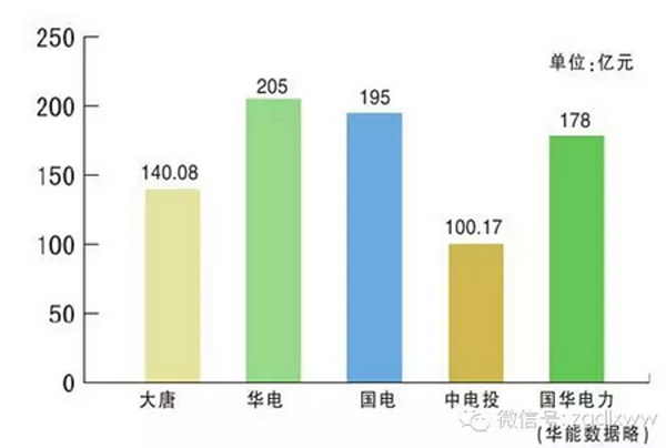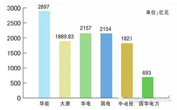 華能集團營業收入依舊領跑五大集團,達到2879億元。