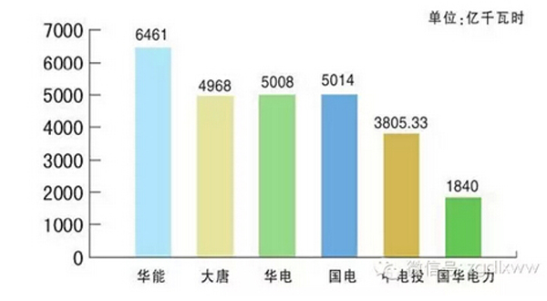 在發電量方面,五大發電集團2014年的排序和2013年略有差異,第一、第二位次不變,第三、第四位次互換。中電投集團完成發電量3805.33億千瓦時。國華電力公司全年實現發電量1840億千瓦時。