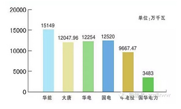 華電集團發電裝機容量排名上升為第三,達到12254萬千瓦。大唐集團裝機容量達到12047.96萬千瓦。