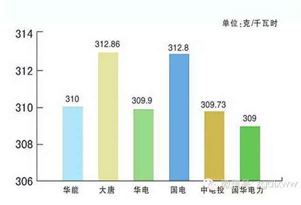華能集團供電煤耗310克/千瓦時,同比下降2.89克/千瓦時。