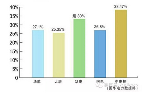 中電投集團清潔能源比重達到38.47%,居五大發電之首。