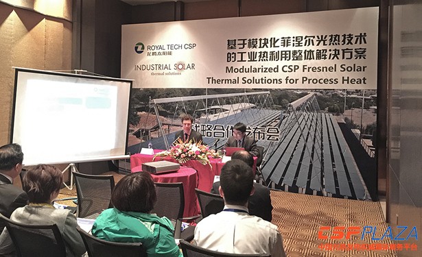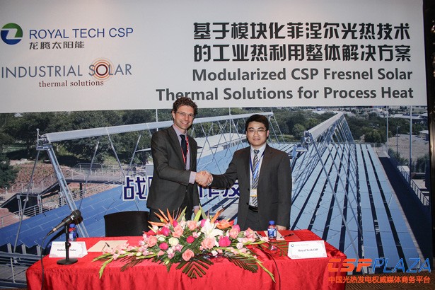 CSPPLAZA光熱發電網報道:2015年3月30日,常州龍騰太陽能熱電設備有限公司(以下簡稱“龍騰太陽能”)與德國Industrial Solar GmbH公司(以下簡稱”ISG”)在京召開戰略合作發布會,正式發布了先進可靠的基于模塊化菲涅爾光熱技術的太陽能熱利用技術,宣布共同進軍中國太陽能熱利用市場。