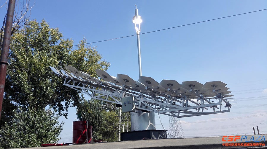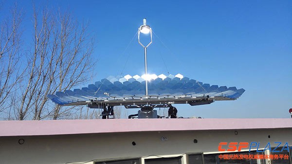 瑜陽光能針對分布式光熱利用的大市場,專門打造了自己的拳頭產品——復合碟,專利名稱叫多碟共焦塔式菲涅爾聚光系統。該碟片利用了雙曲面聚光鏡的嫻熟技術,其中的創意便是把拋面的底部做成獨立的拋物鏡,碟片的底部加強了聚光作用,然后向外延展。復合碟系統采用了塔式的優點,固定焦斑,而其整個的跟蹤系統采用了菲涅爾的線性跟蹤原理,形成漂亮的聚光系統。復合碟由旋轉拋物面聚光鏡的底部相拼而成,在同等的接收面積的情況下,它的熱效率比傳統的整碟要高20%以上。