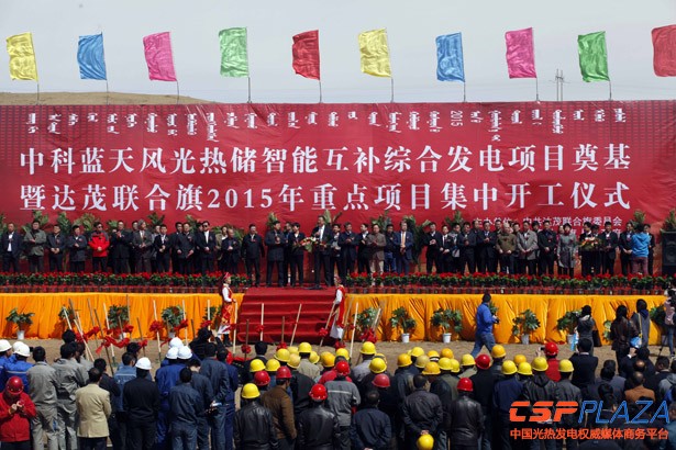 CSPPLAZA光熱發電網訊:4月19日,達茂旗中科藍天風光熱儲智能互補綜合發電項目在包頭市達茂旗工業園舉行開工奠基儀式,項目規劃在2020年前完成建設。