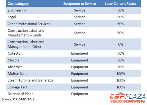 目前,光熱發電的新興市場尤其是阿聯酋、摩洛哥和沙特等國家都在大力提高當地光熱項目的本土化率。2013年,阿卜杜拉國王原子能及再生能源城(K.A.CARE)發布的《可再生能源項目競爭性招標白皮書》也特別設置了項目的本土化指標。該文件目前正在審核,其中關于CSP的系列招標信息即將公諸于世。