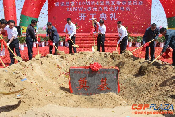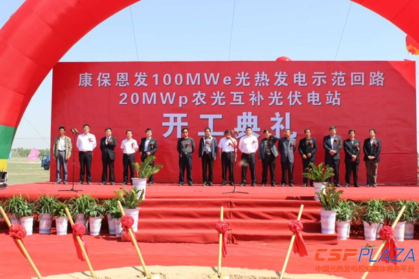 CSPPLAZA光熱發電網訊:2015年5月25日上午,由河北恩發能源科技有限公司(簡稱恩發能源)投資建設的康保恩發100MWe大型光熱發電項目的首期示范項目暨20MWp農光互補光伏電站項目開工典禮在河北張家口市康保縣張紀鎮舉行。該光熱發電項目將采用領先的熔鹽集熱、傳熱、儲熱槽式技術,首期示范項目計劃于今年年底前建成。
